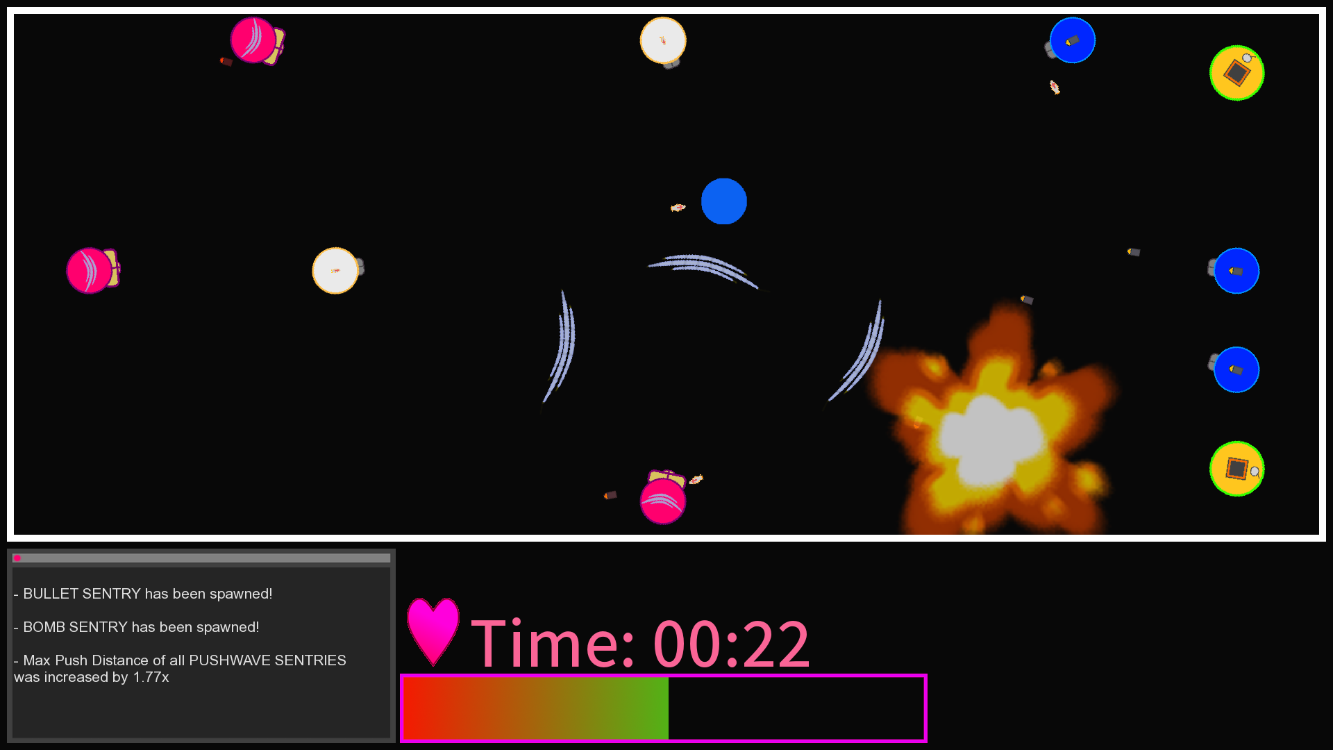 - After starting a round the game spawns sentries and upgrades them over time at random- The bottom UI has a new tab which displays information about those events